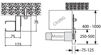Clearance for Standard 75mm Side Guide inclusive of steel hollow seal up (All Dimensions in mm) |