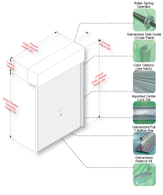 The roller shutter comes with two standard locking devices. First, center lock secured by rivet and steel bar. Second, ground mounted galvanized padlock kit allows user to install their additional padlock.