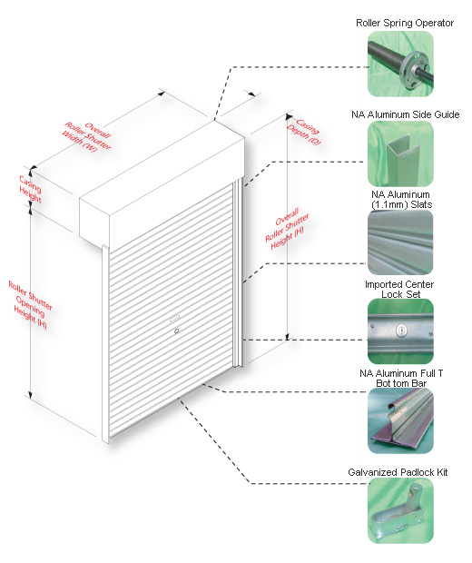 The roller shutter comes with two standard locking devices. First, center lock secured by rivet and steel bar. Second, ground mounted galvanized padlock kit allows user to install their additional padlock.